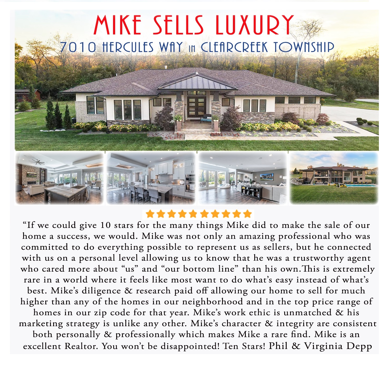 ***other statistics National Association of RealtorsRanked among the top 1% of Realtors in the Dayton Area-2016Presidents Club Award Winner -Numerous YearsIrongate’s Sole Family of Services Award Winner-2011,2016Among the Top Real Estate Producing Award Winner -Numerous Years” Among the Top 50 Realtors On The Rise” RisMedia Recognition 2008Video Tour Statistics from National Association of Realtors and theRPR- Realtor Property Resource Contact Mike